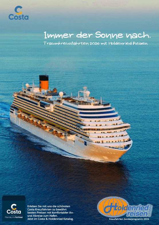Costa Kreuzfahrten steht seit über 75 Jahren für internationale Kreuzfahrterlebnisse mit mediterranem Flair. Als führender Anbieter in Europa bietet Costa eine einmalige Mischung aus moderner Kreuzfahrttechnik, italienischem Stil und weltweiter Routenvielfalt.