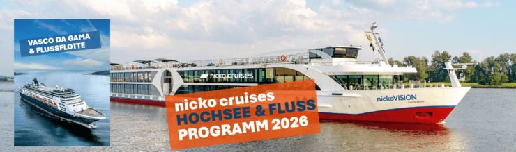 Liebe Reisegäste, endlich ist es soweit: wir präsentieren unsere neuen Angebote von nicko cruises mit den beliebten Reisen auf Rhone & Saone, auf der Seine bis zur Atlantik-Küste. Oder auf der Donau mit Haustürservice bzw. den Rhein zur Tulpenblüte. Im Norden bieten wir die kleine und feine VASCO DA GAMA entlang der Hurtigrute bis zum Nordkap auf dem Weg zur Mitternachtssonnne. Für Fans von Mein Schiff gibts endlich die Japan & Asien Reisen buchbar. Entdecken Sie die Reisen am besten sofort, viele Kategorien sind stark limitiert.