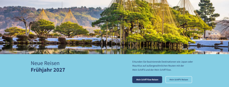 Buchungstart: ab sofort sind neue Routen mit der Mein Schiff 6 und Mein Schiff Flow im Frühjahr 2027 buchbar. Die 21 außergewöhnlichen Reisen versprechen Euren Kunden Vielfalt, Exotik und Entspannung auf höchstem Niveau.